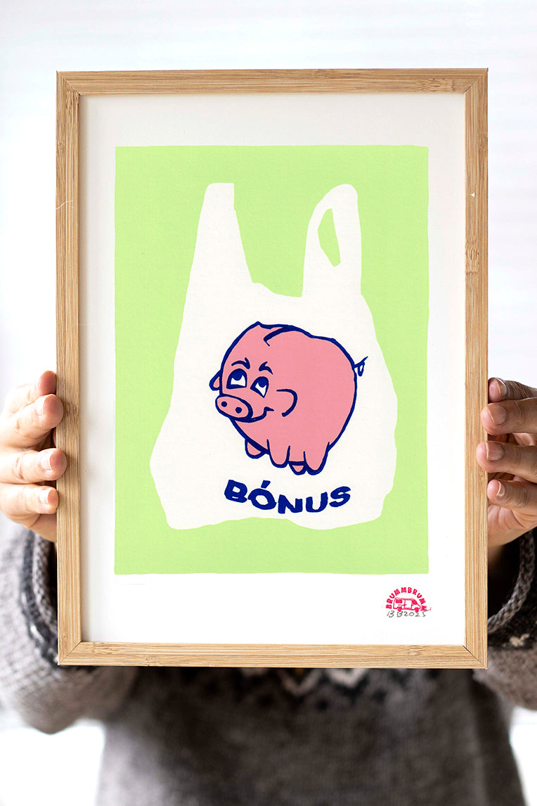 3 colour screen print, hand made, hand printed and hand illustrated in the Brumm Brumm mobile print studio Reykjavík, Iceland.