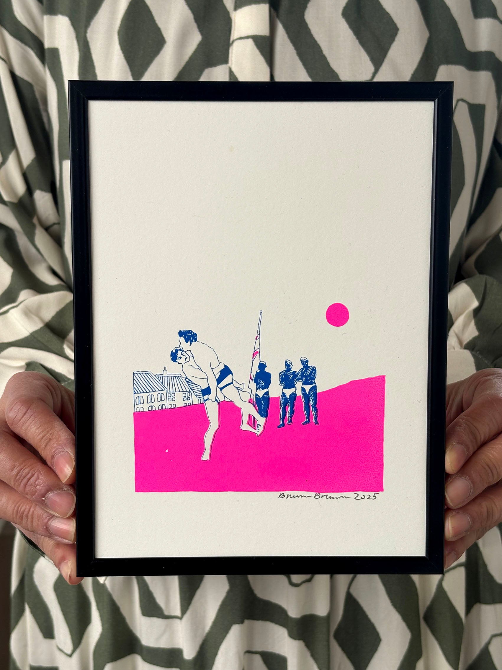 2 colour screen print, hand made, hand printed and hand illustrated in the Brumm Brumm mobile print studio Reykjavík, Iceland.