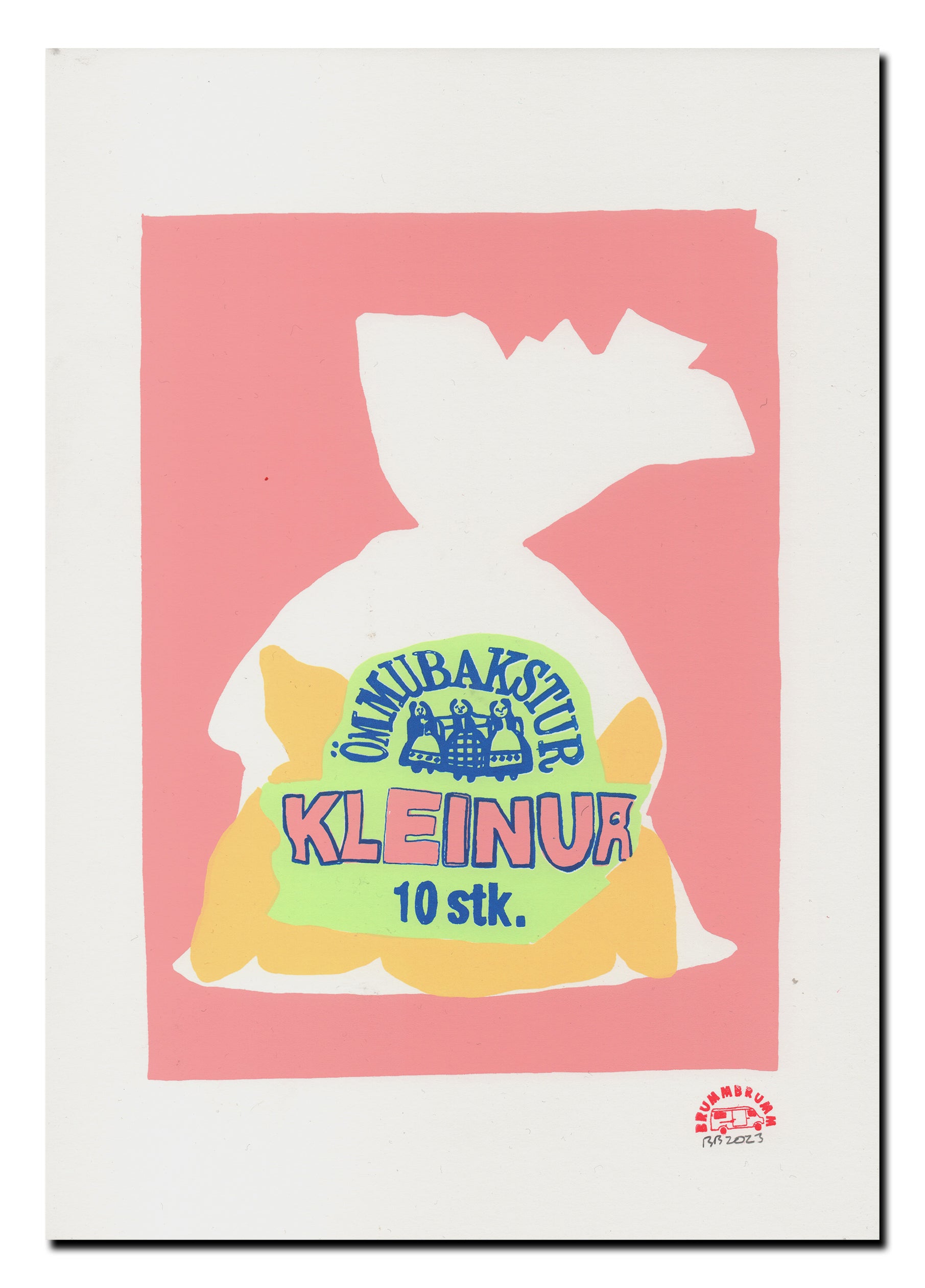 4 colour screen print, hand made, hand printed and hand illustrated in the BrummBrumm mobile print studio Reykjavík, Iceland.